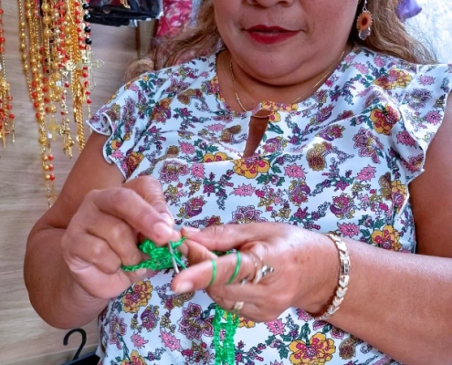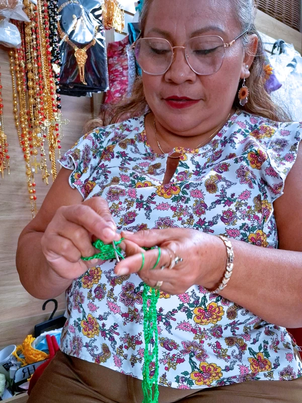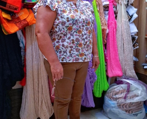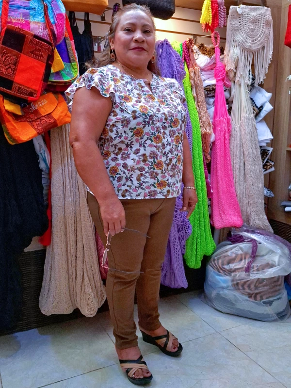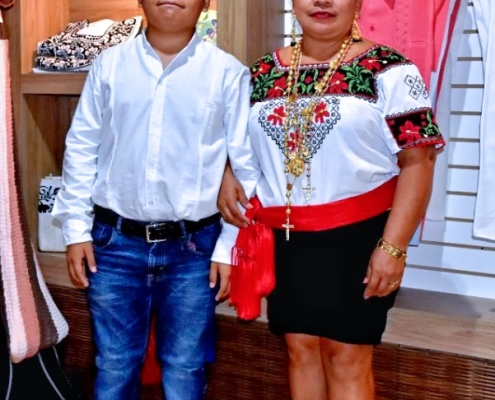 Aunque ahora vive fuera de su pueblo, cada fin de semana vuelve a Calkiní, al corazón donde empezó todo. Allí, sigue tejiendo no solo hilos, sino memorias, junto a su familia: su esposo, sus hijos y un linaje completo de artesanos que continúan con orgullo este legado.