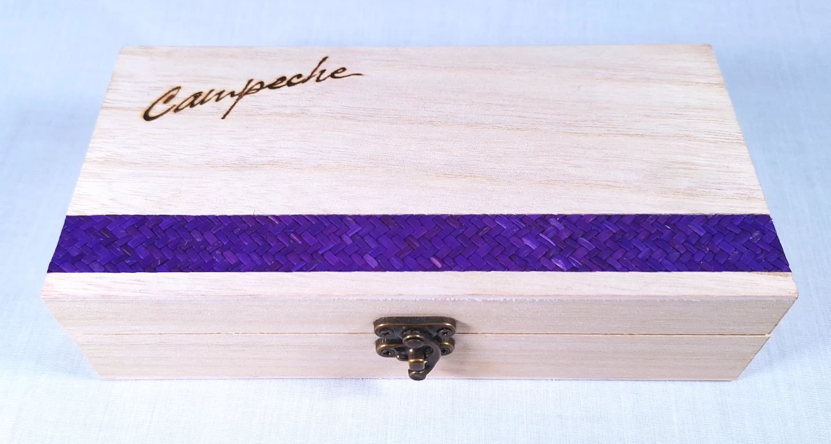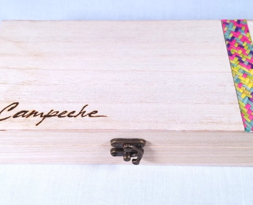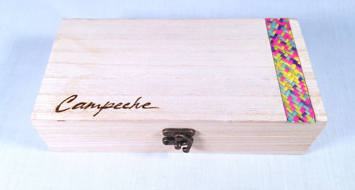 Ideales para guardar recuerdos, joyas o pequeños tesoros, estas cajas combinan funcionalidad con belleza. Sus detalles reflejan escenas de la vida cotidiana, símbolos de identidad regional o motivos florales que evocan la conexión con la naturaleza y las raíces campechanas.