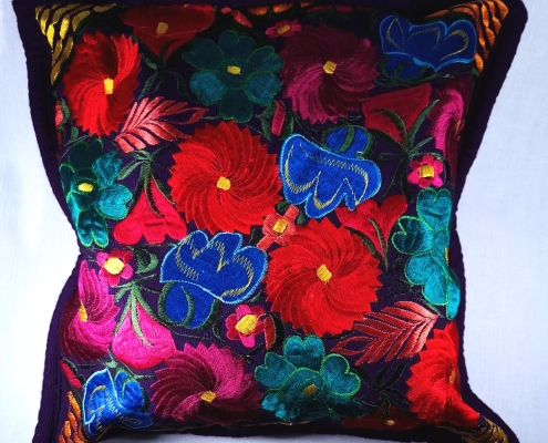 El bordado —hecho con hilos vivos y precisos— transforma cada cojín en una pieza única que aporta calidez, historia y belleza a cualquier espacio. Son perfectos para el hogar, como recuerdo o como muestra del arte textil que sigue latiendo en cada comunidad.
