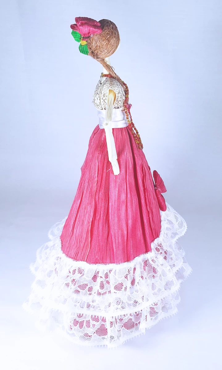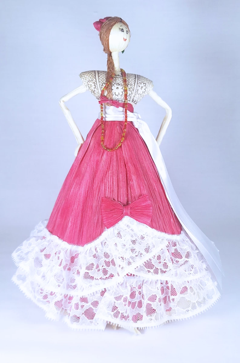 Ligeras, delicadas y llenas de encanto, estas muñequitas están hechas a mano con hoja de maíz, una fibra natural que guarda la esencia del campo y la tradición. Cada figura nace del trabajo paciente de artesanas que, con manos sabias, moldean vestiditos, trenzas y rostros sencillos que evocan la vida cotidiana de los pueblos campechanos.